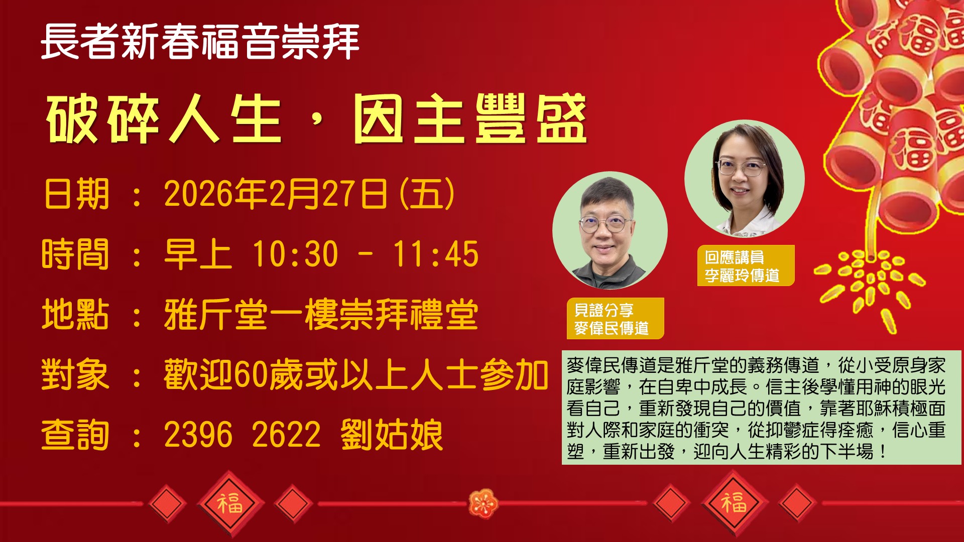 長者新春福音崇拜 - 破碎人生,因主豐盛