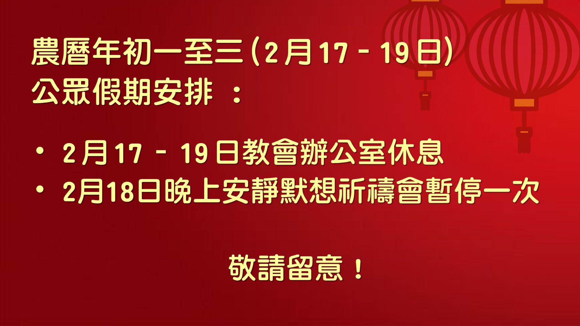 農曆年初一至三( 2 月 17–19 日) 公眾假期安排